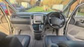 The van comes with the factory alcantara seats with black leather seat covers, smart key , key operated twin electric sliding doors, front and rear air con, reversing camera. Comes with all the other standard Alphard equipment.